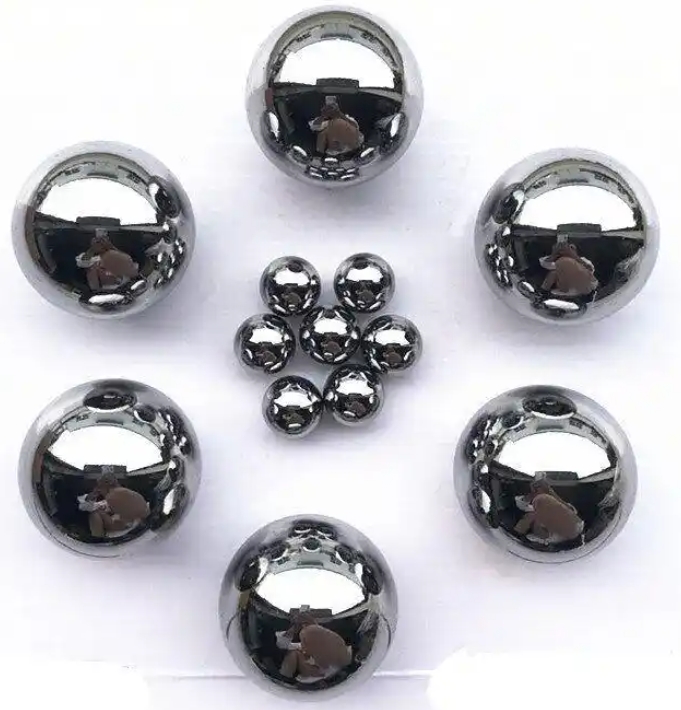 Bilă de oțel tungstenclase de materiale: YG6, YG8. Acest material se numește aliaj dur, care are densitate mare, duritate ridicată, rezistență la uzură, rezistență la presiune, prevenire a ruginii și rezistență la coroziune. Poate inlocui bilele metalice in zonele in care nu pot fi aplicate bilele metalice, bineinteles, la un pret relativ mare.